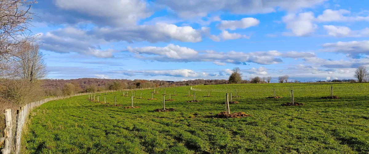 Justine et Arnaud ont déjà implanté 1.300 plants de haies. Avec PlantC, en 2022, ce sont 54 arbres fruitiers et 8 arbres agroforestiers qui se sont ajoutés.