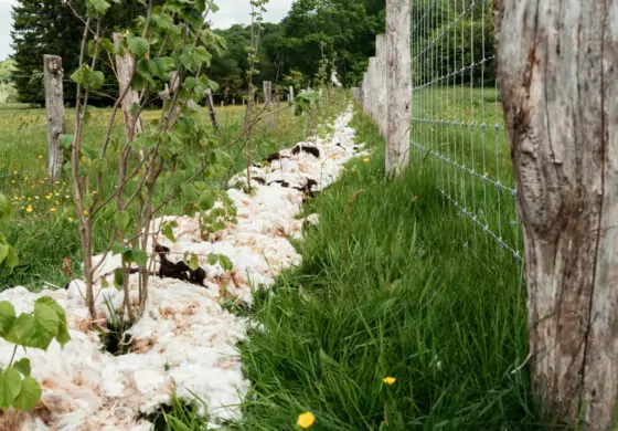 Nous ne pouvons que constater que la haie s’inscrit idéalement dans ce paysage gaumais. Le taux de reprise est très satisfaisant, s’approchant de 95%. Nous avons pu observer que Justine et Arnaud ont débuté la pose de laine de mouton comme répulsif (en effet, l’odeur forte repousse le gibier, friand de jeunes plants de haie) et paillage.