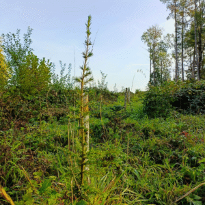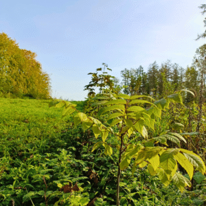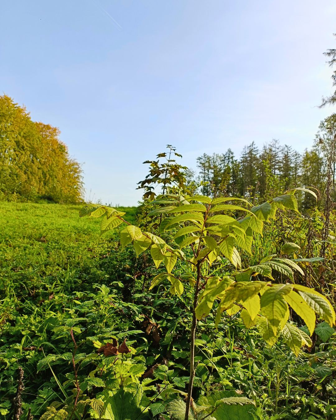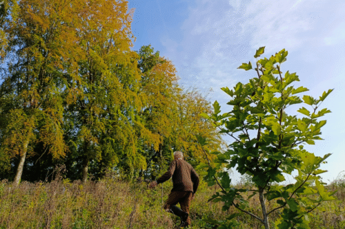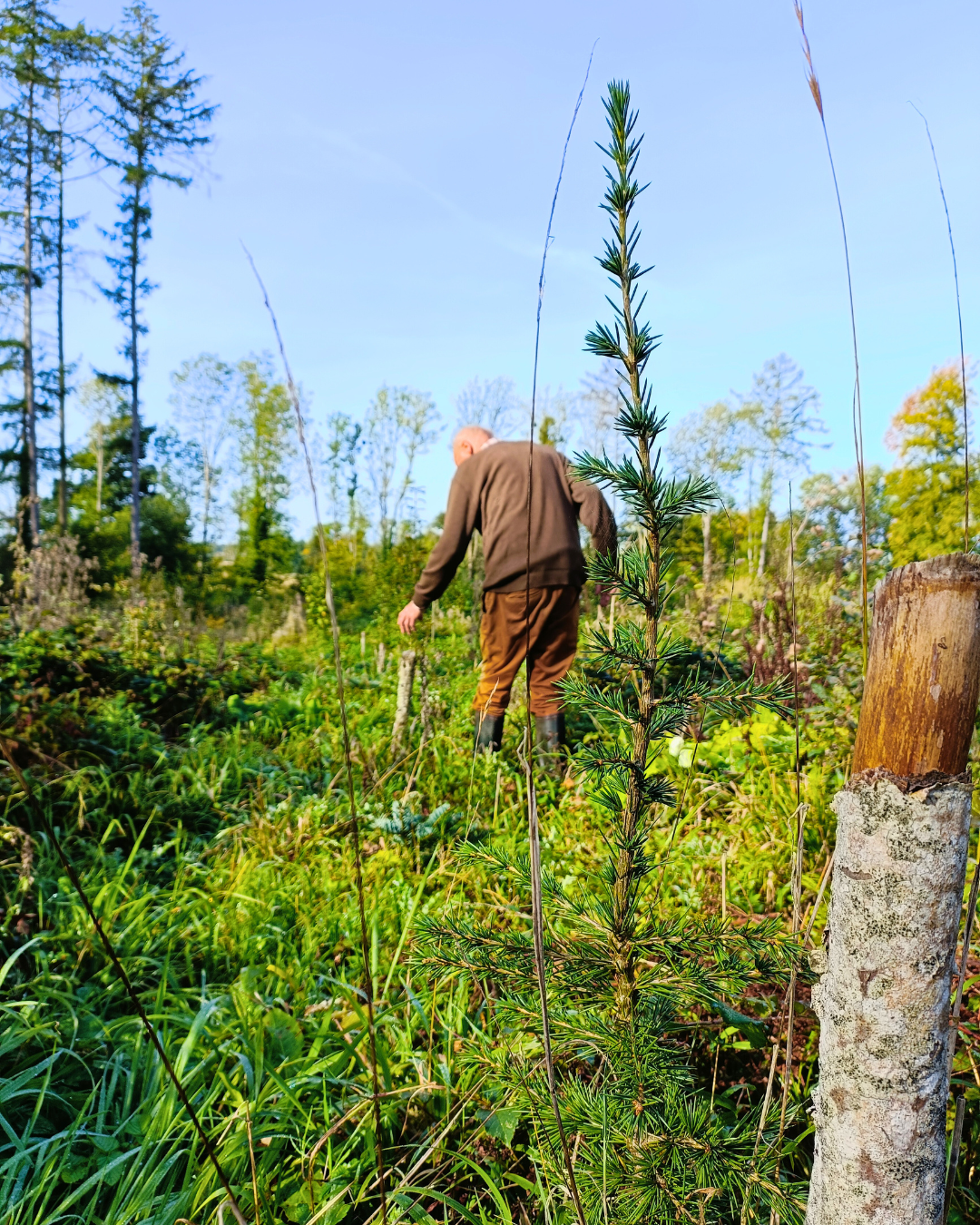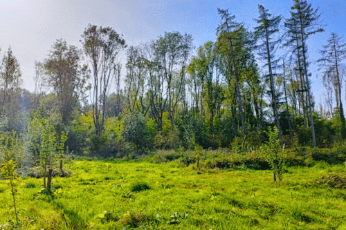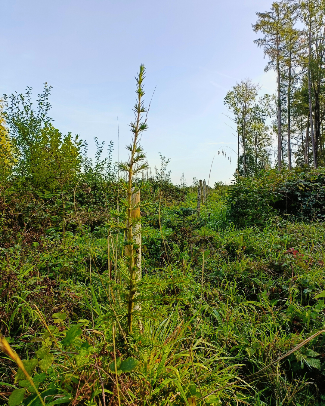 We are welcomed by Mr. de Liedekerke, a retiree passionate about nature. In addition to managing this plot, he created the Bois de la Drève Nature Reserve in Clavier (8 hectares). An ornithology enthusiast, he participated in the Atlas of Breeding Birds in 2009. He has identified no fewer than 70 bird species within a 5 km radius! Let’s move on to monitoring the reforestation…