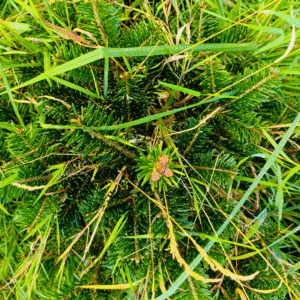 On the East side, the most shaded part, we find a dry mesotrophic soil that is silty-stony with flint or gravel and primarily favorable natural drainage. This explains the choice to plant conifers there: Nordmann Fir (shade-tolerant species) and Atlas Cedar.