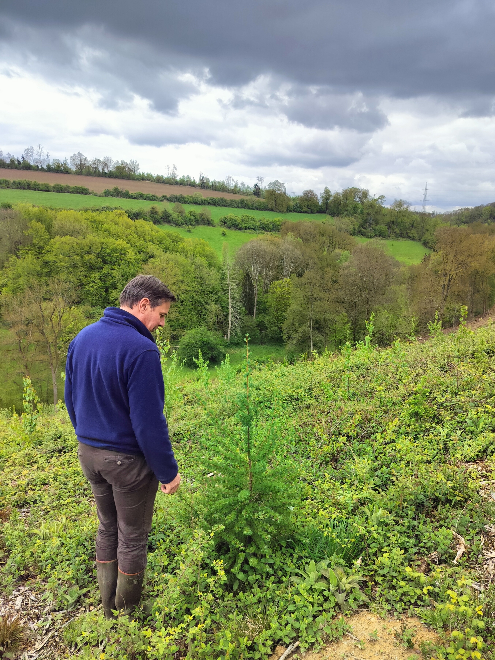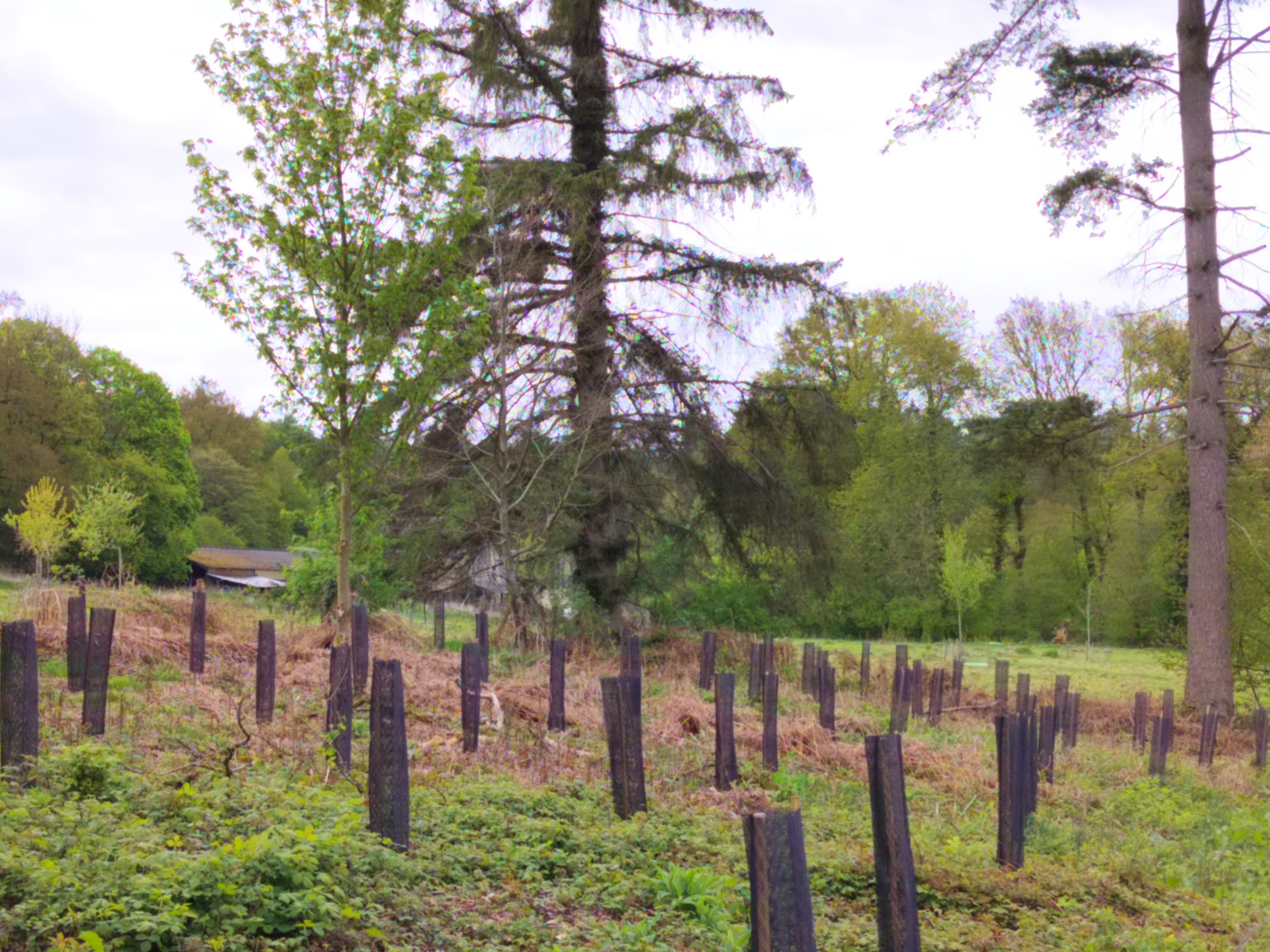 Au-delà de la plantation soutenue par PlantC, le propriétaire a choisi de planter un mélange d’épicéas et de douglas ainsi que de disposer à quelques endroits des châtaigniers.