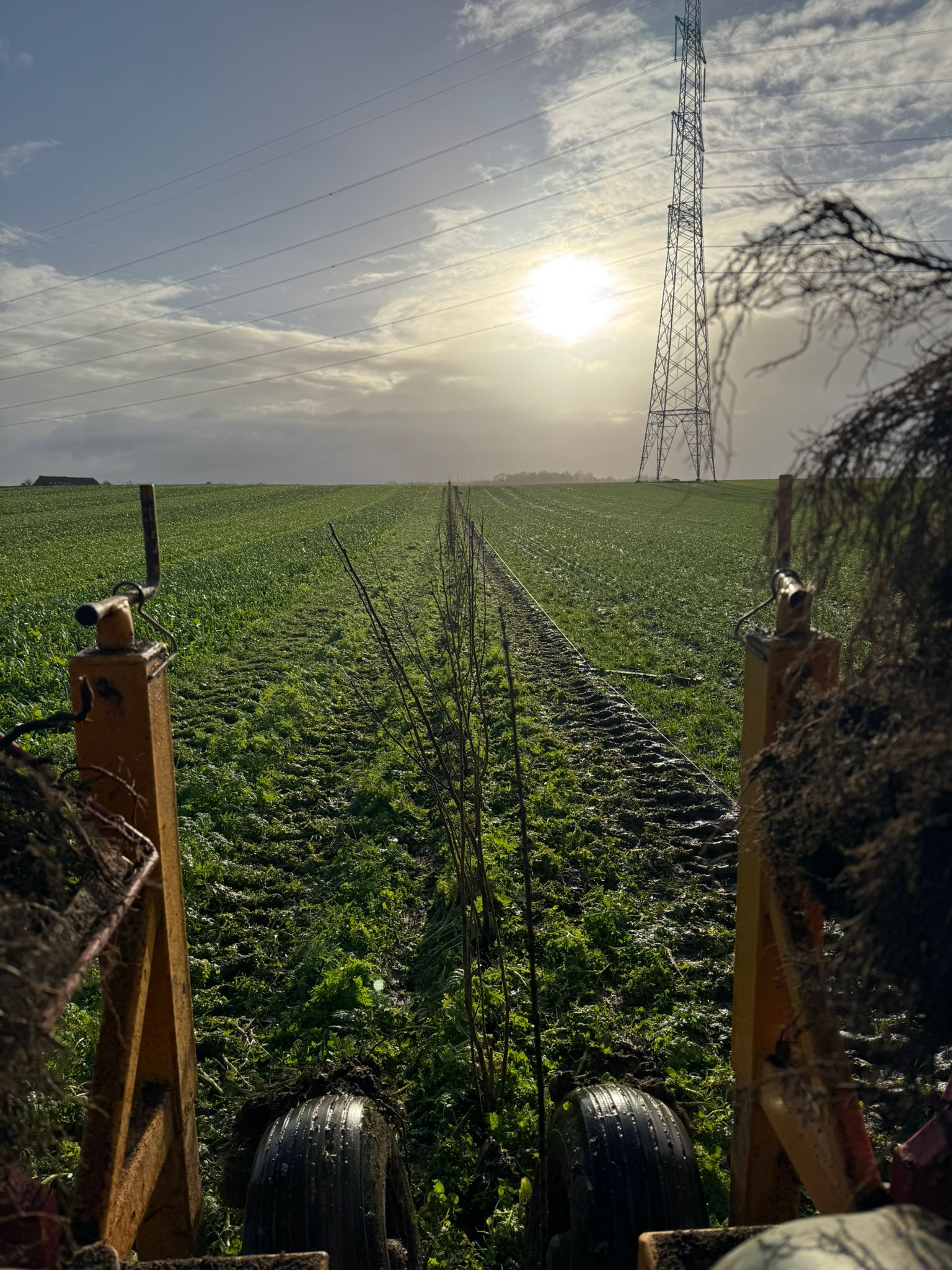 Le 3 janvier 2025, la plantation des linéaires s’est réalisée après une période de pluie intense. Au préalable, sous les conseils de l’équipe PlantC, l’équipe plantation a réalisé un semis de trèfle nain, afin de faciliter la mise en œuvre de la haie.