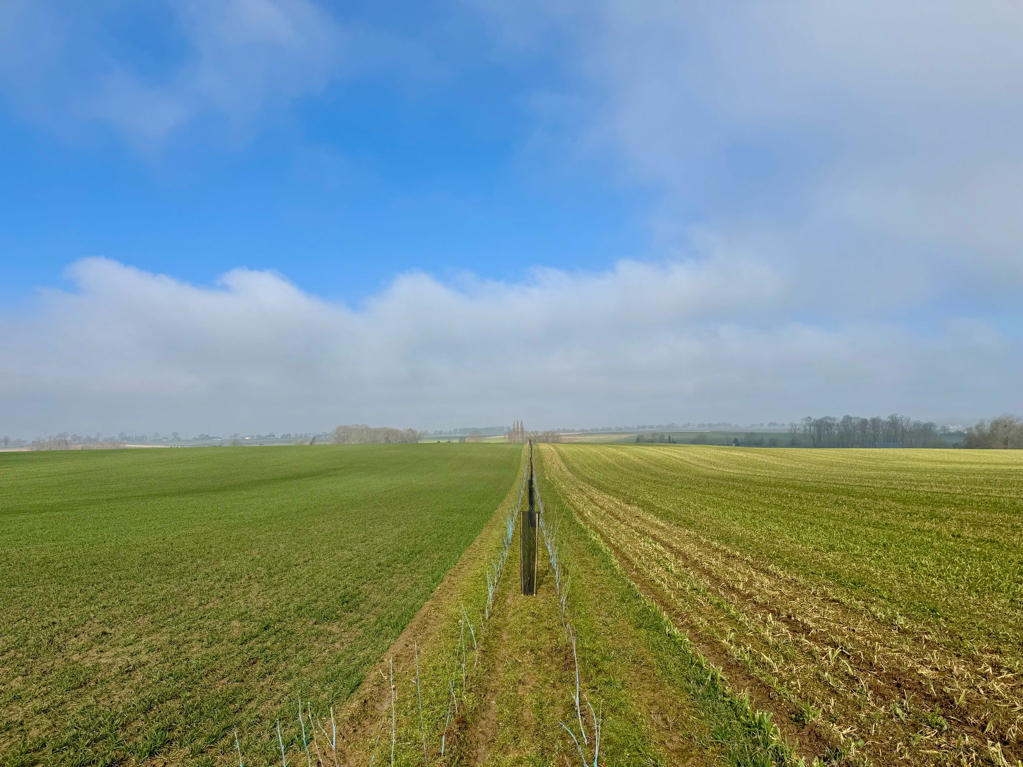Sur la lancée du projet mené à Fleurus en 2023, Vincent Matelard a souhaité remettre le couvert végétal avec PlantC. Il a choisit de scinder ses parcelles de luzerne et de pommes de terre avec des haies pluri strates arborées sur 2 rangs. Son objectif, attirer des auxiliaires de cultures et renforcer le maillage écologique à Boignée.